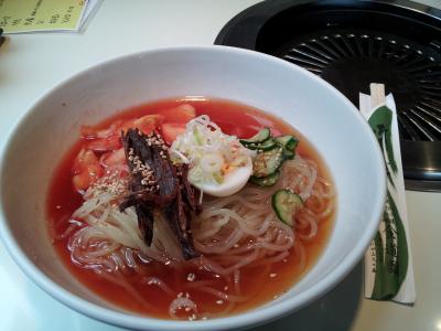 盛冈冷面创立于 1954 年(昭和 29 年),是烧烤冷面的鼻祖。已故前辈青木辉仁将清淡无辣的平壤冷面与家乡咸兴的辣味冷面混合在一起,盛冈冷面由此诞生。为了保留这种传统口味,他从制作开始就重复着当年的做法。由 80% 的牛骨和 20% 的鸡骨熬制而成的浓汤,配上独特的面条,味道十分鲜美。