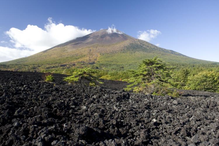 岩手山在历史上曾喷发过约五次,最后一次是在 1732 年,当时从喷口到末端喷发了长 3 公里、宽 1.5 公里的岩浆。发黑的熔岩堆积在岩手山东北部的山坡上,该地区仍然难以生长植被。