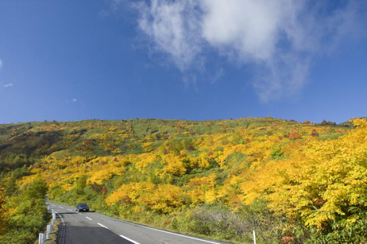 「アスピーテ」とは、楯を伏せたような形の火山を示す名称。岩手と秋田の両県にまたがり、八幡平を横断する全長約27kmのドライブウェイ。茶臼岳の山腹を縫って走る道から南に岩手山が眺められ、樹林の中に青い湖沼やアオモリトドマツの枯れた木々が八幡平ならではの景観を作り出しています。4月中旬、冬期間の通行禁止が解除となる八幡平アスピーテラインは、まだ道路の両側に数mの雪が残り、「雪の回廊」となります。通行可能期間4月中旬から11月上旬。ただし、凍結の危険があるときは通行止めになることがあります。