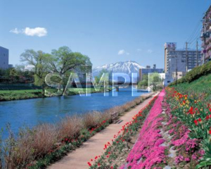 北上川河畔と岩手山