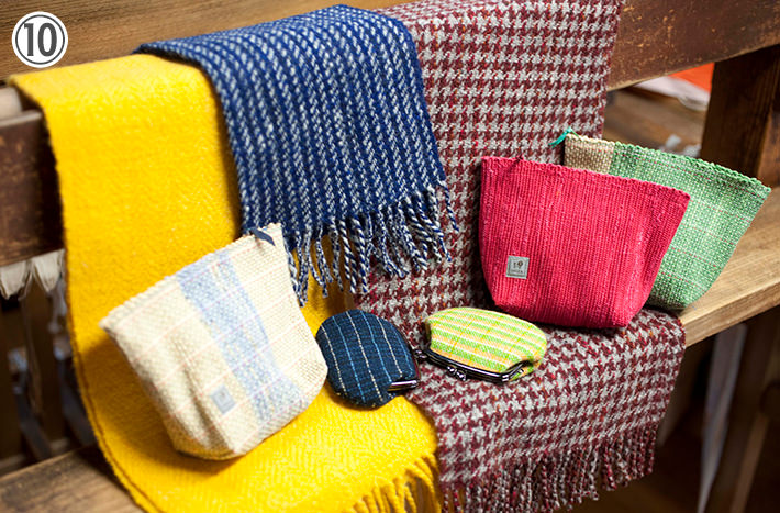 ⑩In addition to homespun scarves and accessories, we also have sakiori pouches.