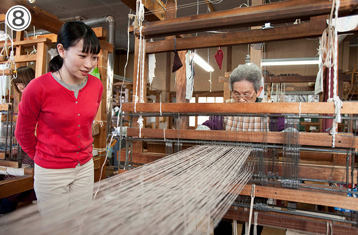⑧ A view of one of the looms. There are so many threads attached to it.