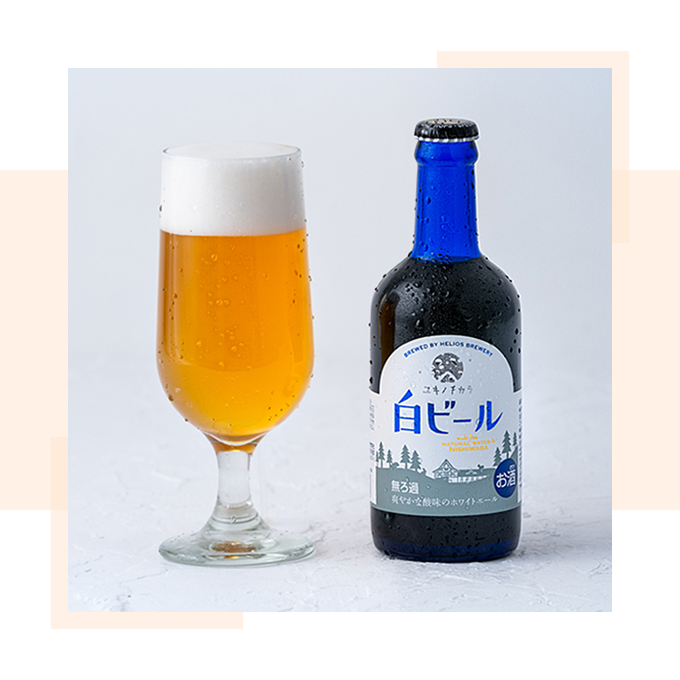 Nishiwaga Town has the most snow in Iwate Prefecture, and lives in snow for about half of the year. Because the beer is brewed with the rich, high-quality water from the Ou Mountains brought by the snow, the result is a beer with a very soft texture.