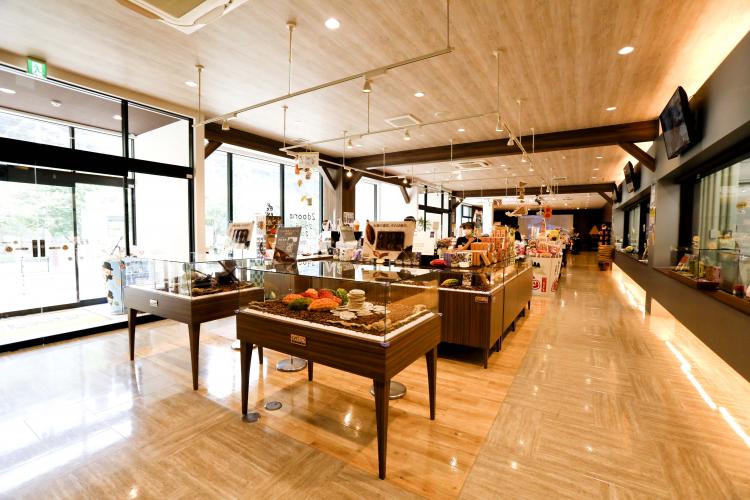 2door is a name that comes from the meaning of ``Ninohe'' and the tradition and fusion of Nanbu rice crackers and chocolate. There is a factory inside the store, and you can observe the manufacturing process through glass, as well as a sales corner for limited edition products that can only be found here, an experience corner, and a cafe space.