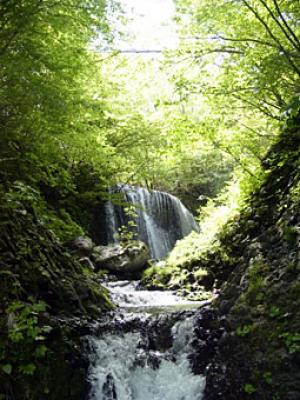 The waterfall is 15 meters high and 14 meters wide, and the falling waterfall stands out beautifully against the surrounding scenery. There is a rock cave near the waterfall basin called ``Aitsubo'', where legend has it that Jikaku Daishi dried his clothes.
