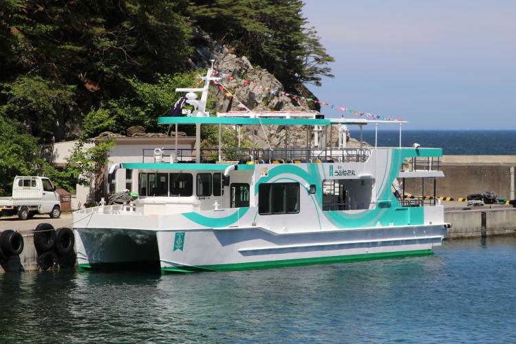 *Miyako City's new pleasure boat "Miyako Umineko Maru" began operating on Sunday, July 17, 2020. This is a new sightseeing boat that takes you around Sanriku Geopark and geosites with a guide, including the beautiful scenery of Jodogahama, a nationally designated scenic spot. Until now, the service had only been operated from Jodogahama, but the newly constructed Dezaki Pier is also scheduled to serve as a departure and arrival point.