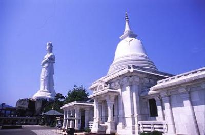 This is an Indo-Sri Lankan Western-style pagoda that enshrines the ashes of Buddha, a gift from the Kelaniya Vihara in the Republic of Sri Lanka. Inside, there is a pagoda containing Buddha's relics and a hall dedicated to the founders of each sect of Buddhism.