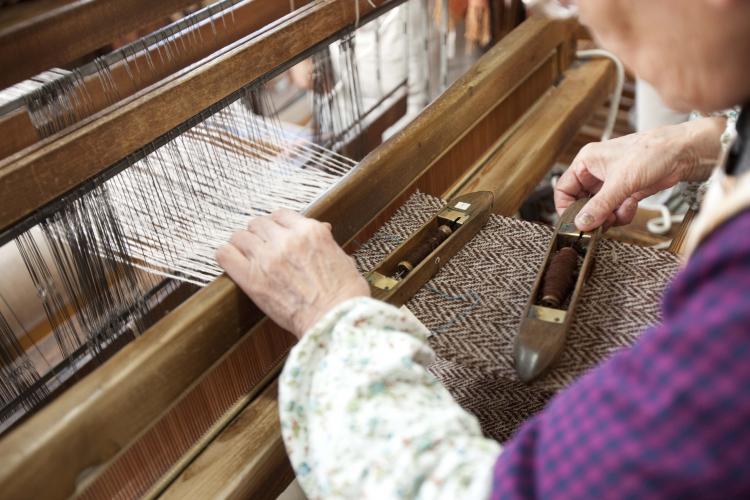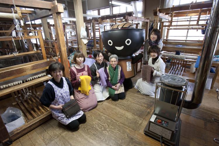 You can see the homespun process, which is all done by hand, from dyeing to weaving, and a series of panels introduce the manufacturing process. Homespun, which was popularized in Iwate by British missionaries at the beginning of the Meiji period, is a woolen fabric made from dyed wool and woven from hand-spun thread. While mass production is often done by machines, Michinoku Akane-kai is particular about creating original handmade products, in which each warp and weft of spun wool is woven by hand.