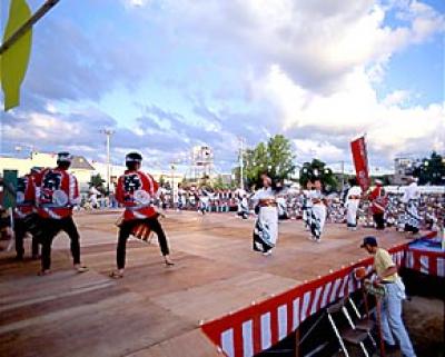 岩手県北、青森県南、秋田県北にまたがる旧南部領内に伝わる「ナニャドヤラ」は、日本最古の盆踊りともいわれます。毎年8月18日の大会当日は多くの観衆が観覧する中、北奥羽圏域から集まった約800人の踊り手達による街頭流し踊りを皮切りに、大野小学校校庭に設けられた特設ステージで、唄、太鼓に合わせた各地域の特徴あるナニャドヤラがしなやかにそして、艶やかに繰りひろげられ、北奥羽の夏の夜にナニャドヤラが華開きます。
