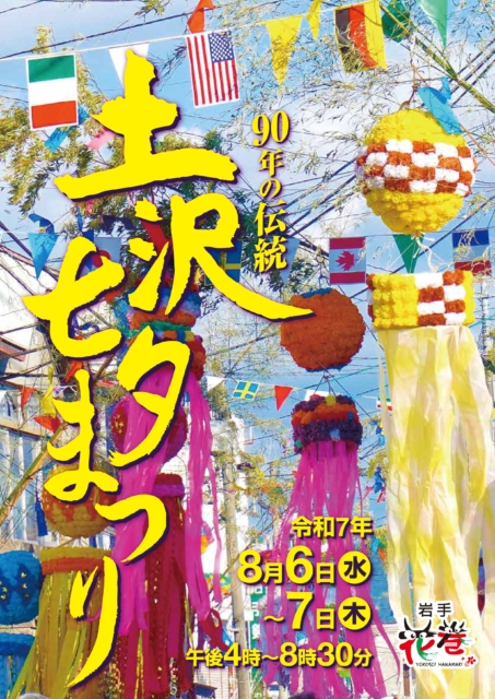 80余年の伝統を誇る土沢七夕まつりは、毎年8月上旬に開催されます。会場の土沢商店街は七夕飾りや絵灯籠で飾られ、賑々しい雰囲気に包まれます。