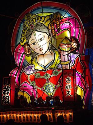 約200年前、天明の大飢饉で餓死した人々を弔うために始まったと伝えられる祭り。高さ約5メートルのあんどんは、障子紙にロウで色を塗って作製。武者絵など4台の山車が各組から繰り出し、帰省客でにぎわう町の夜空を彩る。花巻市指定無形民俗文化財に指定されています。