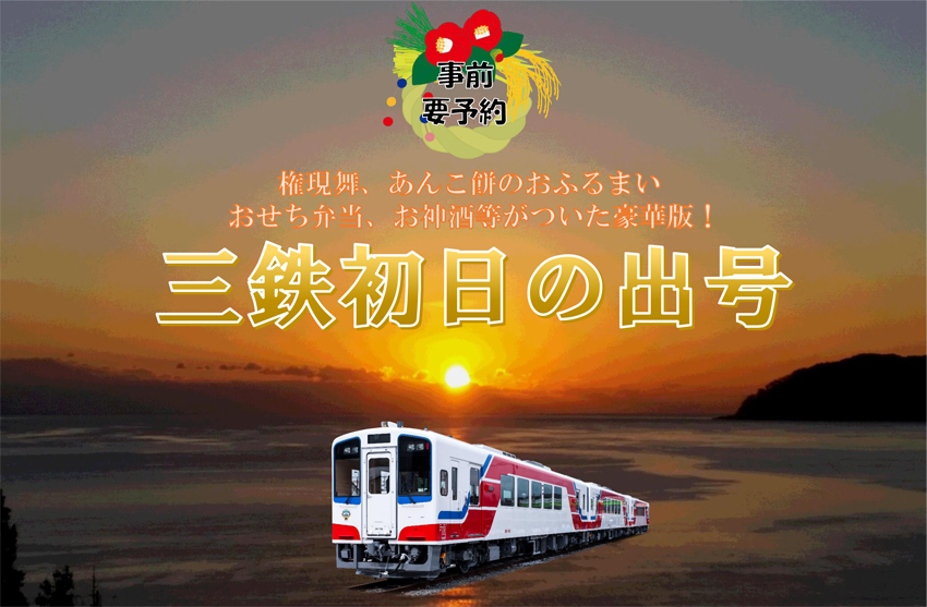 今年も三鉄初日の出号が、盛~唐丹間で運行します。権現舞、あんこ餅のおふるまい、おせち弁当、お神酒等がついた豪華版です。