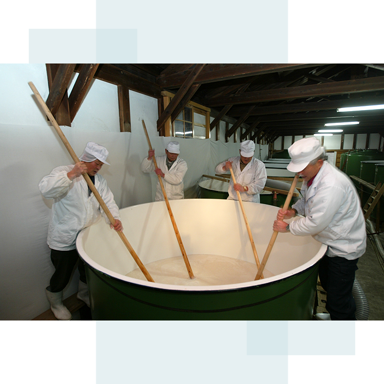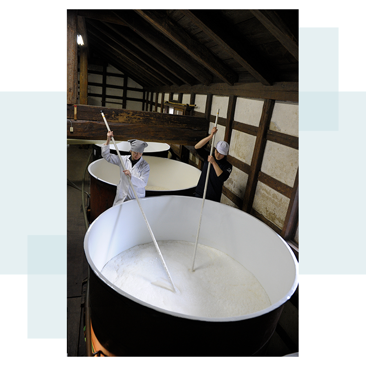 純米酒「北窓三友」は蔵付き乳酸菌による生酛系の酒母で造っていて奥行きのある旨味が特徴で、冷から燗まで温度によって変わる味わいをお楽しみいただけます。