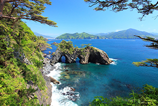 約6kmの海岸線が美しい「碁石海岸」。近くには市立博物館や世界の椿館・碁石などの施設が充実しており周辺散策も楽しめます。