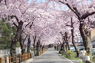 「唐丹町本郷の桜並木」は、昭和8年の三陸大津波の復興を願い昭和9年春に植樹された桜。約800mの桜のトンネルが訪れる人を楽しませてくれます。