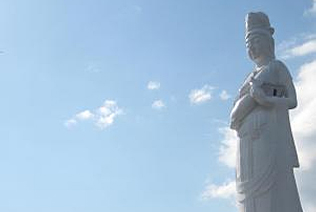 釜石湾を見守るように立つ「釜石大観音」。4〜10階までは七福神胎内めぐり、11〜12階の魚籃展望台からは太平洋のパノラマを楽しむことができます。