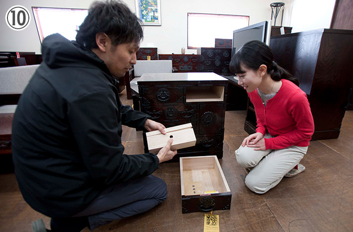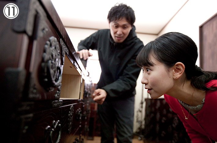 ⑩人気が高いというカラクリ箪笥。こんなところに物入れが!