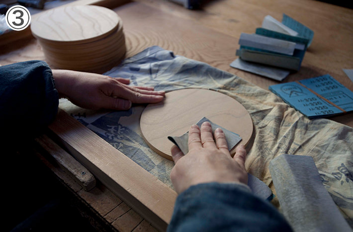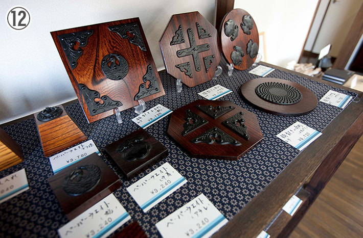⑫鍋敷きやペーパーウェイトなど岩谷堂箪笥の技術を活かした暮らしの道具も作られています。インテリアのアクセントにもなります。