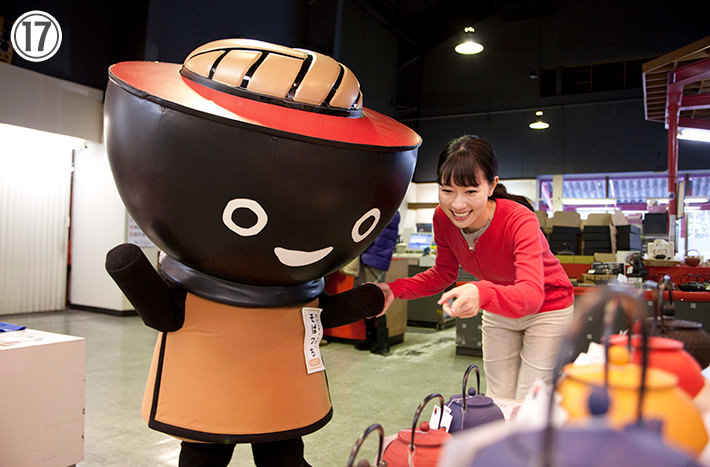 ⑰少し緊張の工場見学でしたが、販売コーナーではカラフルな鉄瓶にそばっちも大喜び!
