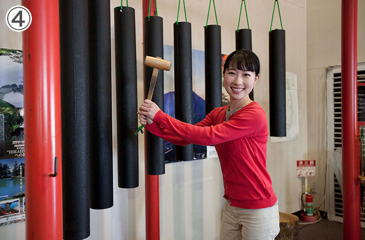 ④こちらは、オリジナルの特大鉄琴。実際に音を奏でることができます♪自由に打っていいそうですよ。