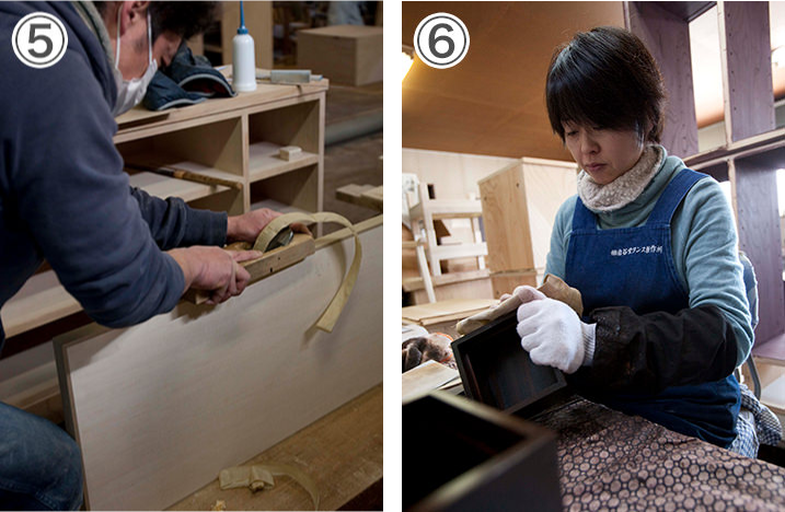 ⑤⑥こうして1783年頃、岩谷堂箪笥製作が始まって以来、そしてこれからも脈々と技術が受け継がれているのです。