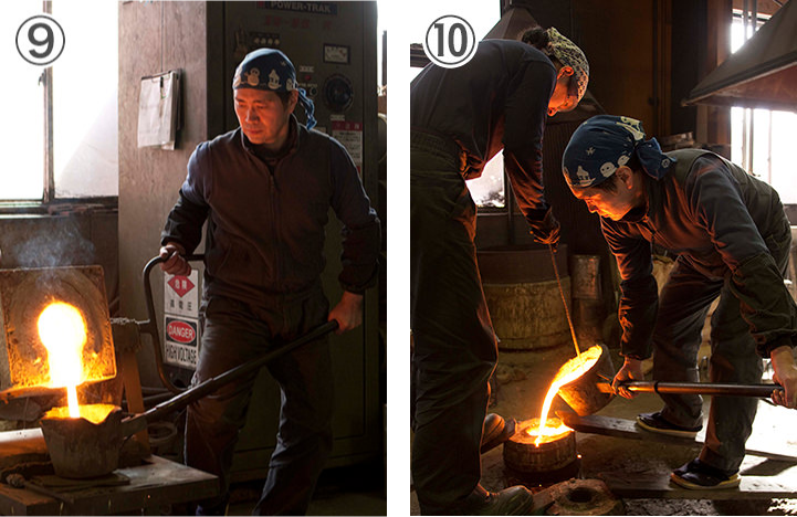 ⑩鋳型に流し込みます。このひとつの鋳型から作れるのはわずか5~6個。傷などができてしまうため使えなくなるのだそうです。