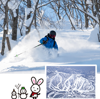 リフト運行率100%と悪天候にも左右されない快適なスキー場。最長滑走距離2,000mのゲレンデはビギナーからエキスパートの方まで楽しめるバラエティ豊かな5つのコース。「スキー」「スノーボード」ともに全面滑走可能です。