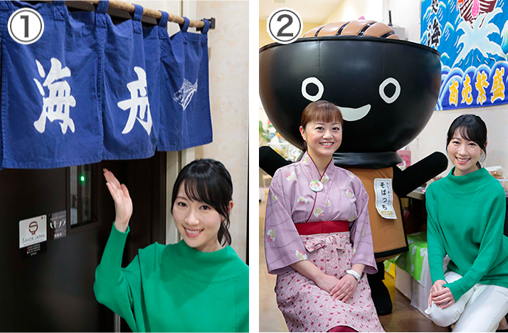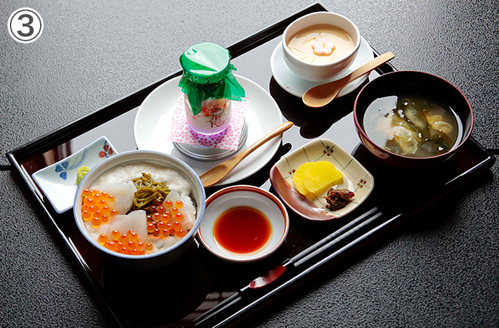 ②「楽しみながら召し上がっていただきたい」と笑顔の素敵な若女将の山根さん。