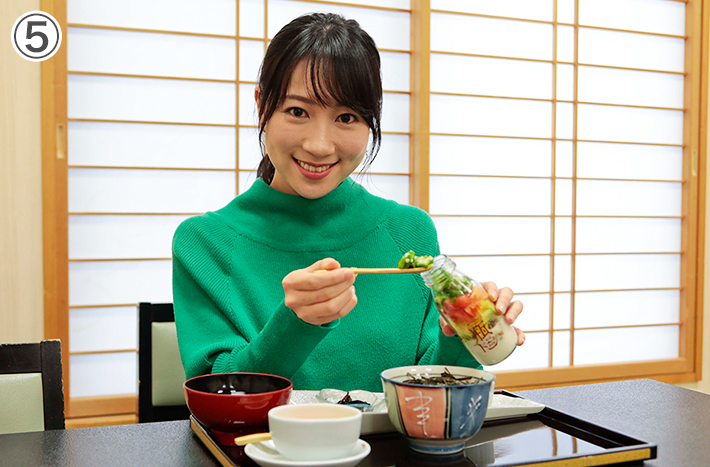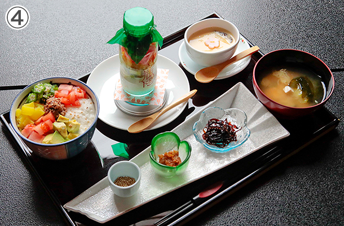 ④野菜中心の「花瑠瑠(ホノルル)」※丼は盛付け例です。実際はご飯のみの丼と食材入りの瓶が提供されます。
