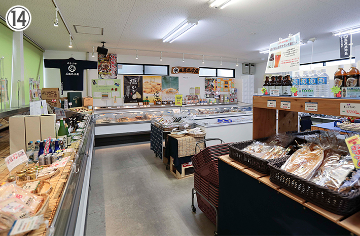 ⑭ 五篤丸水産では、海産物や加工品などの特産品を販売しています。