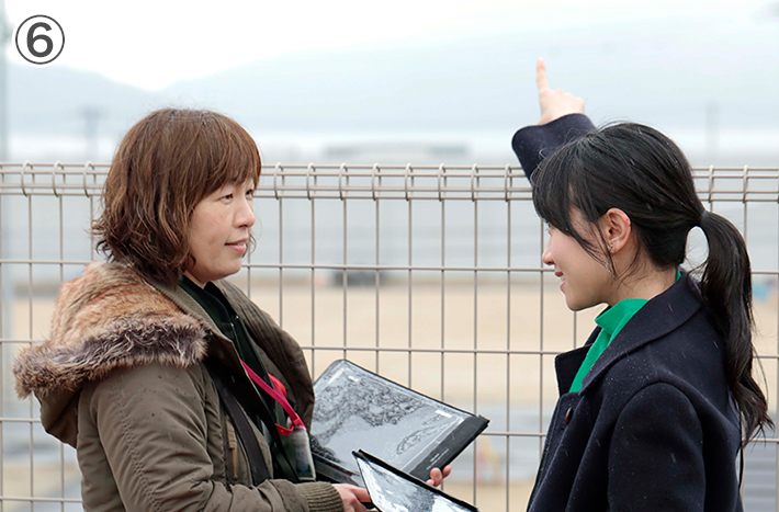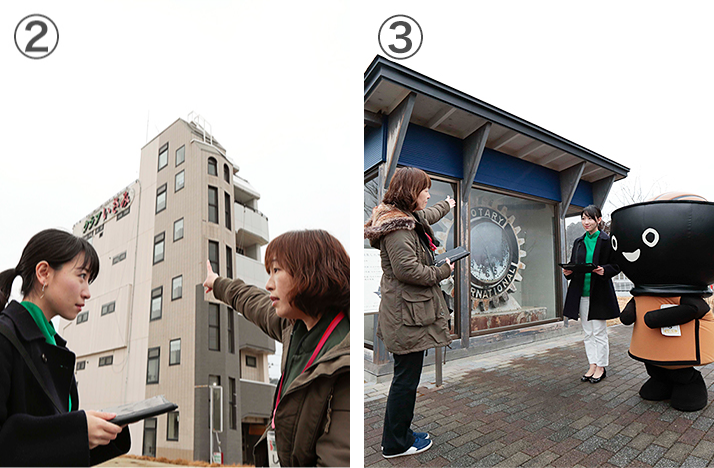 まず、参加者にはタブレットが配布され、説明を聞きながら震災前の写真と現在の様子を確認できるようになっています。