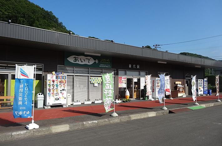 三陸鉄道 普代駅に併設の特産品やお土産、生鮮品も並ぶアンテナショップ。駅利用者の他、地元や周辺の方も買い物に訪れる品揃え充実のお店です。普代を代表する特産「昆布」を使った加工品はお土産としても最適です。