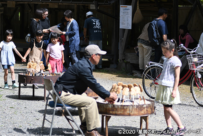 地元のお母さんたちが作る豆腐田楽や軍配もちなど郷土料理が楽しめるおまつりが、5月から12月の毎月1回、桂の水車広場を会場に行われています。