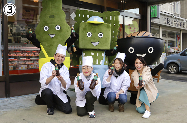 ③「普代の昆布は食べる昆布」と力を込めた、代表の上神田 敬二さん(左端)。