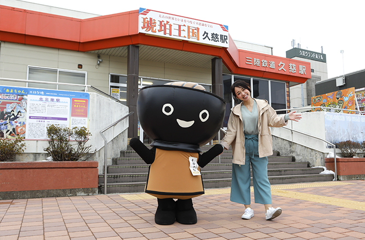 三陸鉄道「北の玄関口」久慈駅。北限の海女で知られる小袖海岸や、日本随一の琥珀の産地など海、山それぞれの魅力がいっぱいの久慈の旅スタートです!