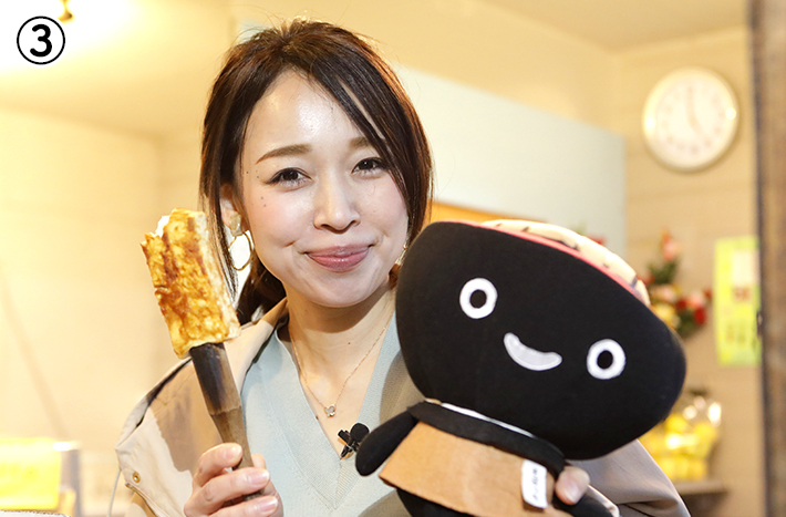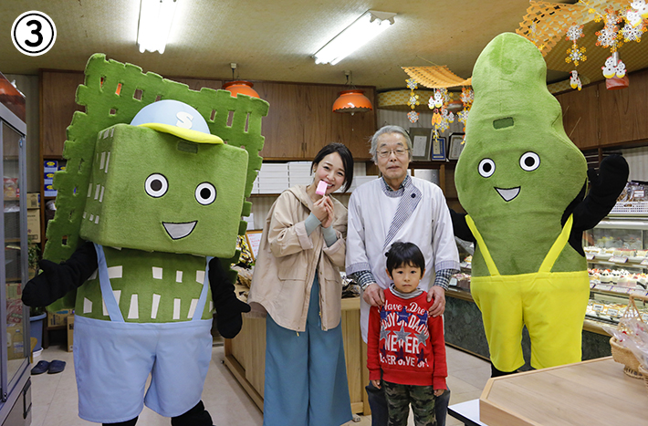 ①ネーミングも楽しい下川原商店のお菓子。「鼓舞焼き」は2020年1月~2月のJALコーヒーサービスのお菓子に採用されました。