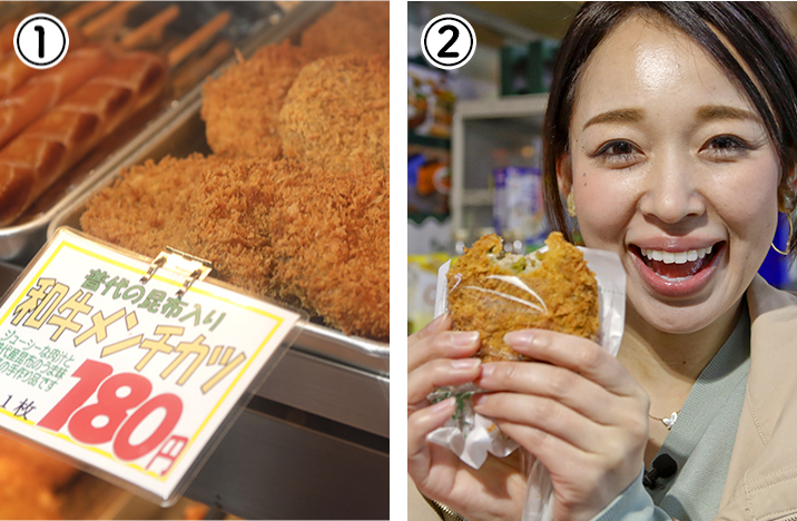 ①「普代の昆布入り和牛メンチカツ」は、頬張るとジュワッと広がる和牛と昆布の旨味が贅沢なおいしさ!