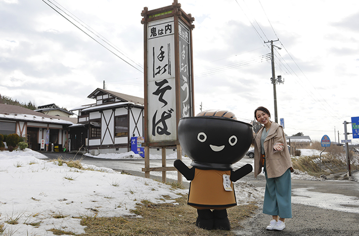 特大のおにぎりと蕎麦またはうどんがセットになった「赤鬼定食」が人気の鬼は内。おにぎりに使われるご飯の量はなんと2合くらいだとか。ボリューム満点なのに価格は1,000円(税込)と手頃で、地元の方はもちろん、見た目のインパクトも評判を呼び遠方から訪れる方も多いそうです。おにぎりが小さめの「ミニ赤鬼定食」や蕎麦、うどんなどの単品メニューも豊富です。