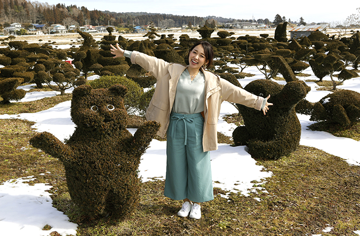 久慈市から田野畑村へ向かう国道45号線沿い(久慈市宇部町)にたくさんのトピアリーのある畑があります。個人所有の畑ですが見学は自由。使われている木はイチイの木で、全て持ち主の方の手作業によるものだそうで、道ゆく人の目を楽しませてくれます。