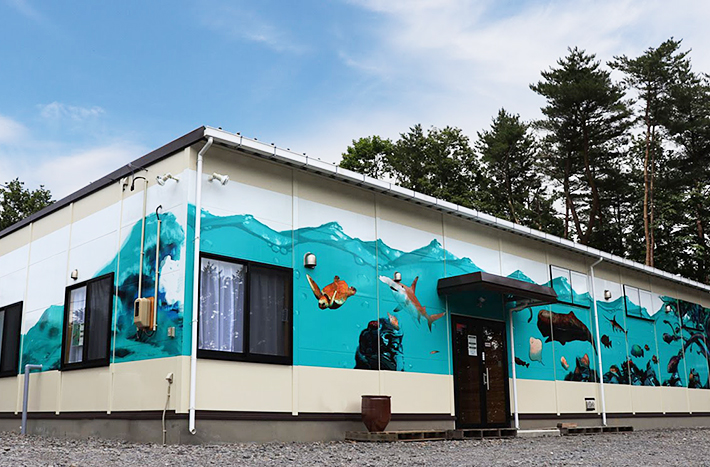 2018年5月オープン、海が見える静かな山あいの緑に囲まれた、野田村・深渡栄一さん(65)の私設美術館「魚の番屋」。延べ床面積400平方メートルの館内には、深渡さんが50年間現役漁師を続けながら、チェーンソーやノミ、彫刻刀で制作してきた350点もの作品群が展示されています。木目が美しい地元のケヤキ材を使い、漁師ならではの視点で作られた味わい深い大小さまざまな海の生き物たちはまるで今にも動き出しそう!躍動感あふれる活き活きとした姿をじっくりお楽しみください。