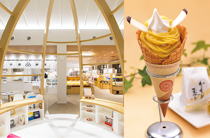 「かもめテラス」は、三陸菓匠さいとう総本店の菓子工場併設型旗艦店として2017年11月にオープンしました。和洋菓子やベーカリーの販売、イートイン&カフェスペース「えんがわカフェ」、工場見学やギャラリースペース、DECOかもめの玉子体験やお菓子教室などが開催される「かもめキッチン」、銘菓かもめの玉子を模したキッズスペースなど、見て、作って、食べて楽しめる施設になっています。