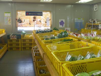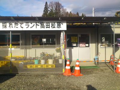 해안 근처에 있던 「갓 얻은 랜드 타카다 마츠바라」는 동일본 대지진으로 모두 유실, 농작물을 만드는 타바타도 큰 피해를 받았습니다. 그러나 조합인이 총력을 들고 2011년 6월에 이 시내 다케코마초에 가설 점포에서 재 오픈. 재해 전과 다르지 않은 신선한 야채와 수제 과자 등을 판매하고 있습니다.