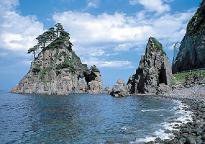 큰 바위에 푹 빈 구멍. 한때 구멍 천장에서 낚시 종 모양의 바위가 매달려있었습니다. 부부가 저 세상에 갈 때, 이 땅에서 진정해, 이 종을 붙이고 나서 극락 정토에 들어간다고 전해지고 있습니다.
