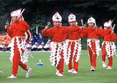 가와구치 여우 춤은 이나리 카구라라고도 불리며, 여우는 이나리 오아키 신의 사용을 반영한 것입니다. 이나리 신사가 가와구치 성지에서 현재지로 천좌 때 여우도 제공한 것이 전해져 메이지 시대에 세가와 감지로씨가 손을 넣어 완성했습니다. 춤은 12, 3세부터 20세 전후까지의 남자. 쇼코는 북 2~4명, 피리 2명 이상, 빈손 병 2명 이상, 북은 여우와 함께 춤춘다. 순서는 「엔진」, 「2열교사쿠」, 「엔진」, 「2열교사쿠」, 「연결의 원진」이 되어 있습니다. 개최일 가와구치 가을 축제시