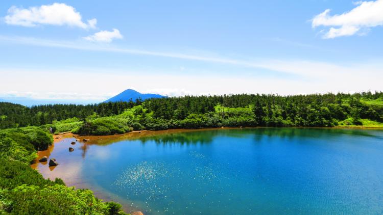 해발 1,613m의 하치만평 정상 전망대에서 눈 아래로 보이는 주변 1.5km의 하치만누마 맞은편에 있는 주변 500m의 작은 늪입니다. 유황 콜로이드라는 물질이 녹아 있기 때문에, 늪의 물은 푸른 색을 띠고 있습니다.