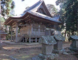 후지와라 세이카이가 불상이나 신령을 기진해, 아쉽게 신앙했다고 하는 신사. 남부 영내의 총진수가 된 곳에서 현재의 사전은 문화 7년(1810)에 재건된 것. 사당 양 외측의 허리란 사이, 겨드랑이, 정면 격자문 등이 멋진 조각으로 장식되어 있다. 본전뒤에 있는 큰 태내석을 벽면에 닿지 않도록 빠져나가면 이익이 있다고 한다. 「칠 이상한」이 있는 신기한 신사입니다.