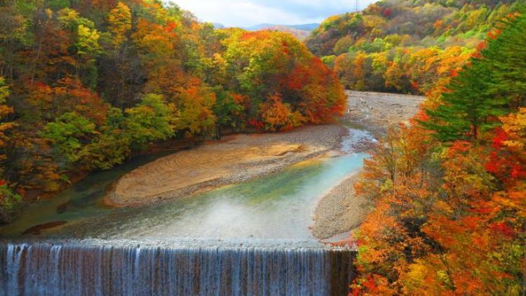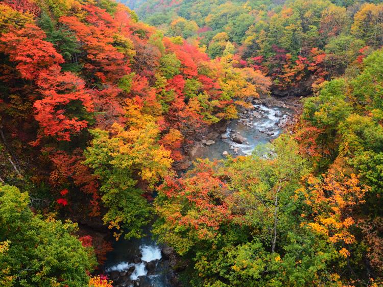 마쓰카와 계곡에 걸리는 다리. 절호의 단풍 명소.