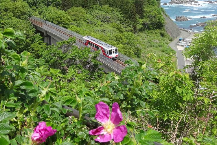 산리쿠 철도가 태평양을 배경으로 철교를 건너는 곳입니다. 산리쿠 철도 호리우치역 남쪽에 있는 높이 30미터의 철교다. 산리쿠 철도 연선에서도 손꼽히는 명소로, 다리 위에서 약 1분 정도 정차하여 관광객에게 오션뷰 서비스를 제공한다. 드라마 '아마짱'에서 대어 깃발을 흔드는 여름바빠의 장면은 바로 아래 해안에서 촬영되었다. 국도 45호선 부근에서 셔터 찬스를 노리는 사진 마니아들에게도 인기 있는 명소입니다.