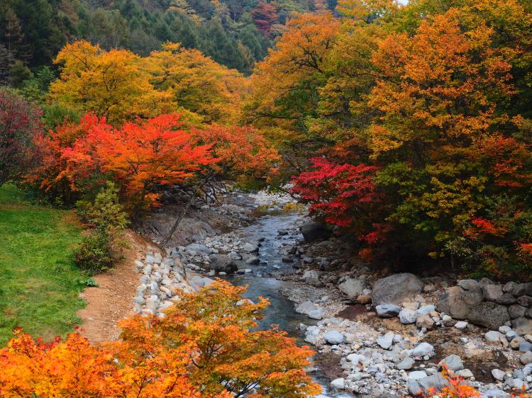 松川温泉周辺から続いている渓谷。イワナやヤマメが釣れるほか、秋には色とりどりの紅葉が見事です。 【紅葉の見頃】 10月上旬~10月下旬