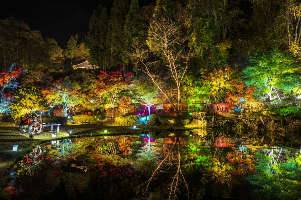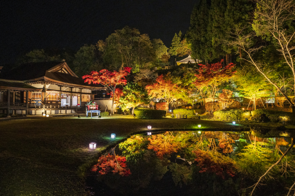 - 伽羅御所庭園の紅葉がライトアップされるほか、プロジェクションマッピングも開催されます。